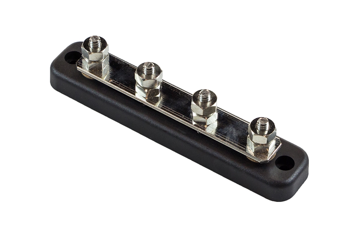 Электромонтажная клеммная колодка на 4 силовых контакта. Применяется для винтового соединения кабелей.
